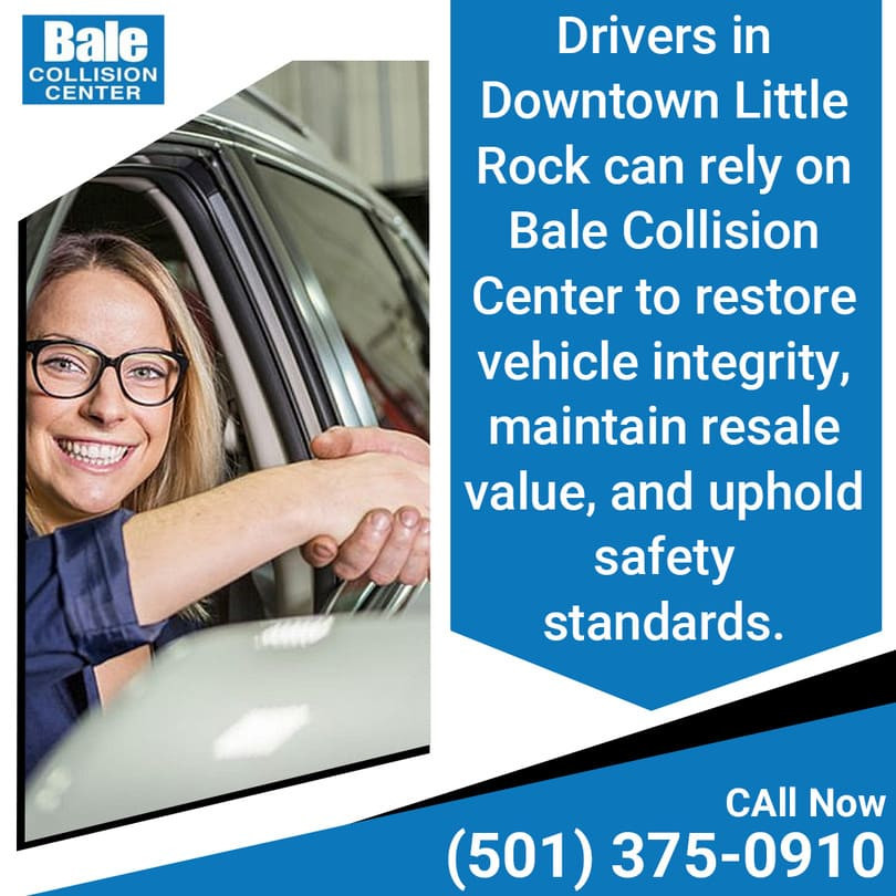 Drivers in Downtown Little Rock can rely on Bale Collision Center to restore vehicle integrity, maintain resale value, and uphold safety standards. Whether the damage is cosmetic or structural, the shop delivers dependable car body repair services backed by decades of experience.